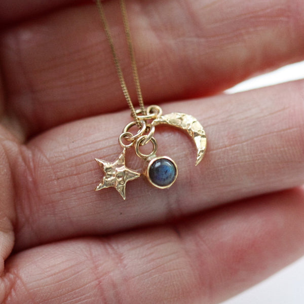 A selection of Pretty Wild handmade gold & silver necklaces, featuring gemstones and diamonds. Beautiful whimsical fairy necklaces with added gold stars, or choose an elegant timeless piece for everyday wear. We have moon and star necklaces, gemstone necklace or choose a birthstone necklace in silver or gold which make a thoughtful gift. Statement neck pieces to for the individual to stand out from the crowd. Rustic and unusual twig necklaces for a touch of personalized initial jewellery.