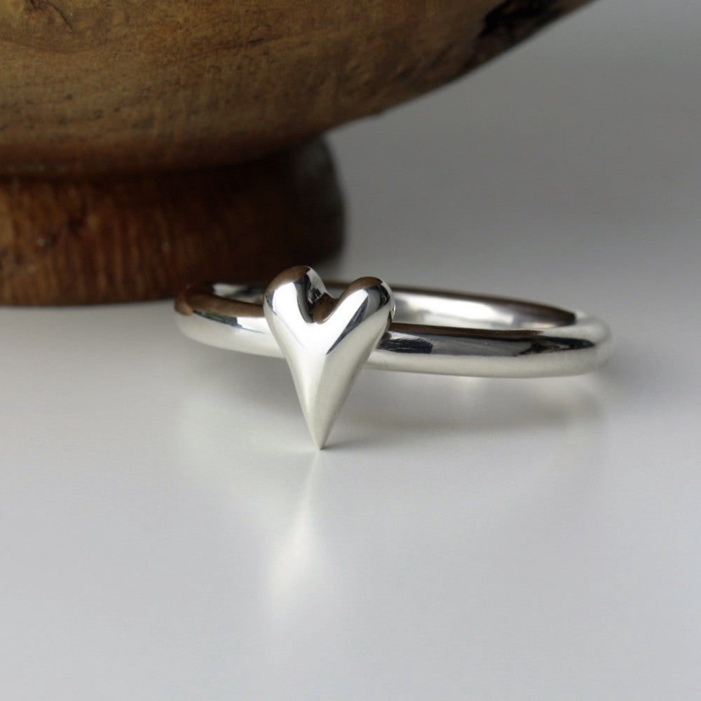 Handmade silver heart ring is a beautiful designer heart on a sterling silver ring band. Inspired by the Arts & Craft movement, this sterling silver heart ring has been designed with so you can stack other "Wild at Heart" rings together.