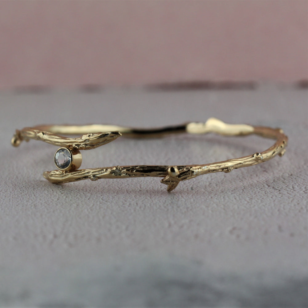 Gold Topaz Twig Bangle - Nature Inspired British Jewellery - Loved-Always